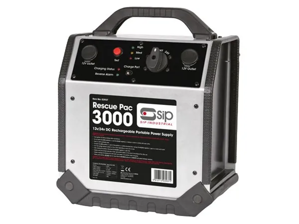 The SIP Rescue Pac 3000 is a powerful booster boasting dual voltage operation, automatic overload protection, and two 12v DC sockets, all encased in a tough and rugged steel housing.
