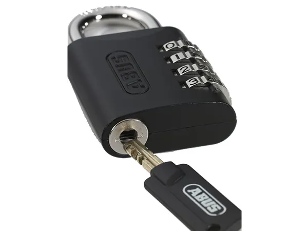 The ABUS 158KC/45 is a medium security padlock with Key control which allows key override and the retrieval of lost codes. The hardened steel shackle is double bolted and mounted in a tough die-cast body which is designed to resist saw attacks. Override Key not included