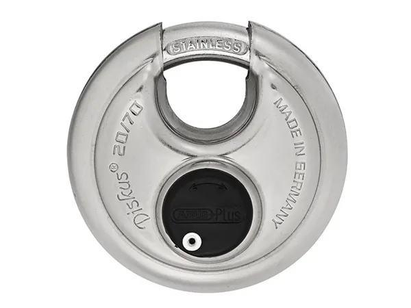 The ABUS Diskus® 20 Series Padlocks are the Original Diskus® padlocks. The body, inside and out is made from stainless steel. The shackle is also made from a high quality, hardened stainless steel. Fitted with the ABUS-Plus disk cylinder, it offers the highest protection against manipulation and an extremely high number of key differs.