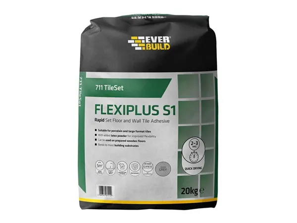 Everbuild 711 TileSet Flexiplus Tile Adhesive is a quick setting floor and wall tile mortar with added latex powder for improved flexibility. Can be used on prepared wooden floors, interior and exterior use where same day fixing and grouting is required.