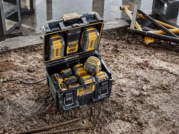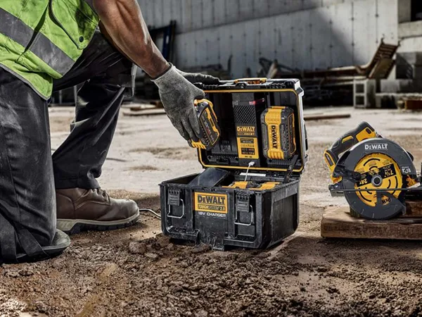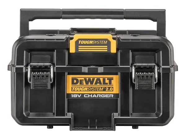 The DEWALT TOUGHSYSTEM™ 2.0 Charger Toolbox offers plenty of internal storage space and can charge two 18V Li-ion or 54V FlexVolt Li-on batteries. It also features two USB charging ports, one internal and one external. Dust-tight and water resistant (IP55) thanks to a high-performance seal in the lid, helping it to withstand the most severe weather. Protecting your tools in all conditions.