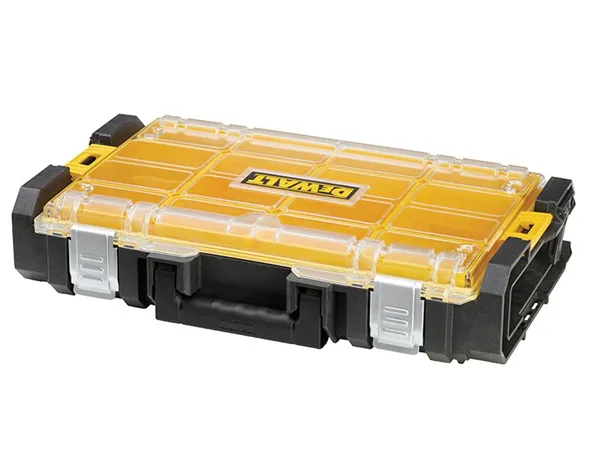The DEWALT TOUGHSYSTEM™ Organiser is part of a stackable system, that makes for easy transportation. The removable cups provide flexible organisation and it has a water seal for increased protection from water and dust. It has a clear polycarbonate cover that is impact resistant and allows you to easily identify the contents.