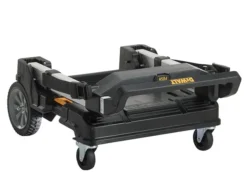 The DEWALT TSTAK™ Trolley is a foldable telescopic aluminium trolley with a 100kg/220lb load capacity for durability. The front castors and back wheels allow for good manoeuvrability.