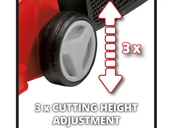 The Einhell GC-EM 1032 Electric Lawnmower is robust and manoeuvrable, enabling the best mowing results in small gardens. Recommended for lawns up to 300m². Its powerful motor generates high torque for good progress through high growth. For precise adjustment to individual requirements, there is a separate 3-level cutting height adjustment facility for each wheel.