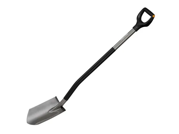 The Fiskars Ergonomic™ Pointed Spade has been optimized for comfort, working with your body to reduce strain and improve performance. Its boron steel head, with stepping board, adds extra strength and makes driving into tough soil easier. The sharp cutting edge is ideal for aerating, stirring and turning soil, cutting through roots, and digging in stone, clay and hard soil.