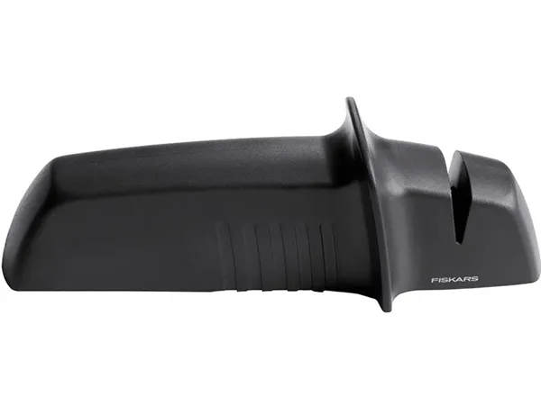 The Fiskars RollSharp™ Knife Sharpener is suitable for both right and left-handed people, and requires no electricity. The sharpener has a ceramic wheel, safety hand guard and blade guide slot to make sharpening knives easy and very safe.