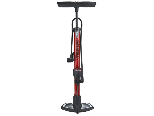 The durable steel body has a double-sided footplate for added stability, with a large twin grip pump handle providing a comfortable grip for ease of use. The pump is fitted with an analogue pressure gauge with a maximum reading of 160 psi /11 bar, and a generous 60cm long rubber hose, fitted with a double-head connector for use with both Schrader and Presta valves. Hose clips are also provided for neat, and easy storage.