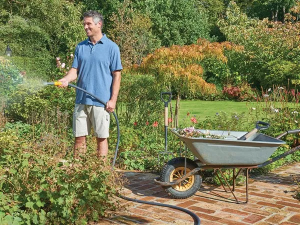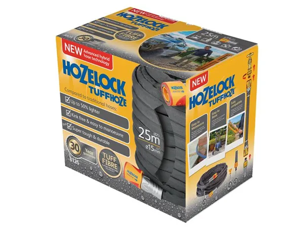 The Hozelock Tuffhoze is an advanced hybrid garden hose, combining the best of 2 hose technologies, traditional PVC and textile. Made with Tuff-Fibre, a durable woven fibre technology. It is up to 50% lighter compared to traditional hoses making it easier to manoeuvre.