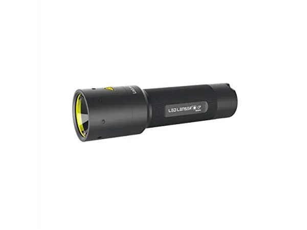 The Ledlenser i7 lights permanent in Power mode for up to 5 hours1, in Low Power mode it manages 35 hours1. A lighting performance with a luminous flux of up to 220 lm1Â and a beam distance of up to 180 m1Â in the defocused setting is an impressive feat for an LED flashlight that is only 13 cm in length and 175 g in weight. The industrial torch is operated using four ordinary AAA alkaline batteries.Â