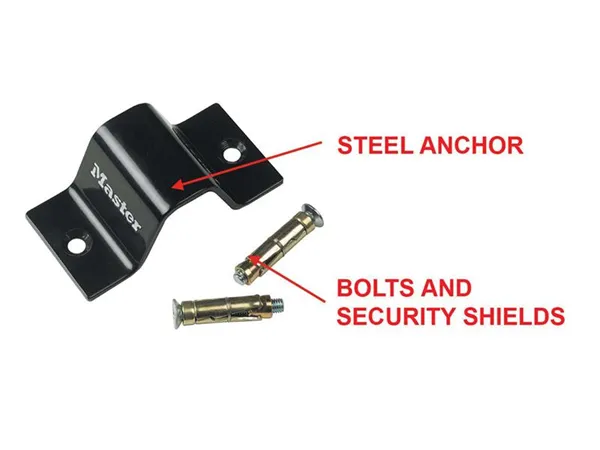 Hardened steel anchor point for mounting kit including expanding anchor bolts.