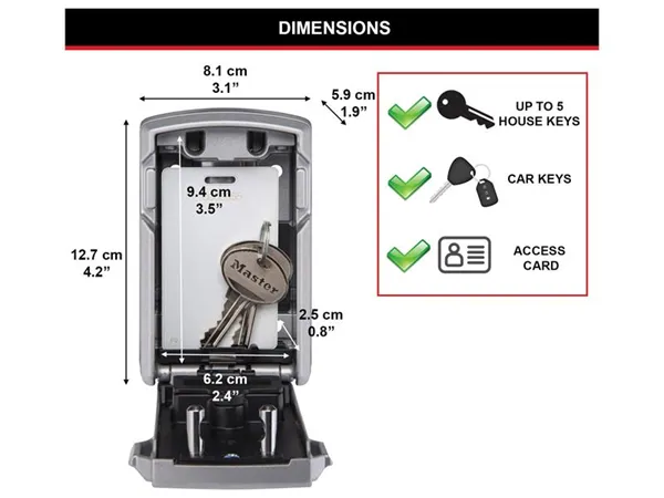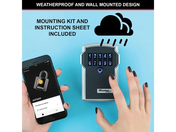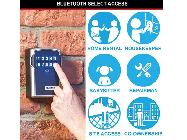 The Master Lock Select Access SMART™ Bluetooth Large Key Box can be used inside or out. It is unlocked via a Bluetooth® connection using a smartphone or tablet. Download the free app from the Apple Store or Google play. This lets you share access with others one time or permanently. Keeps a record of all the access history, and has a low battery reminder for peace of mind. There is also a backup numeric keypad for access if a bluetooth connection isn’t available.