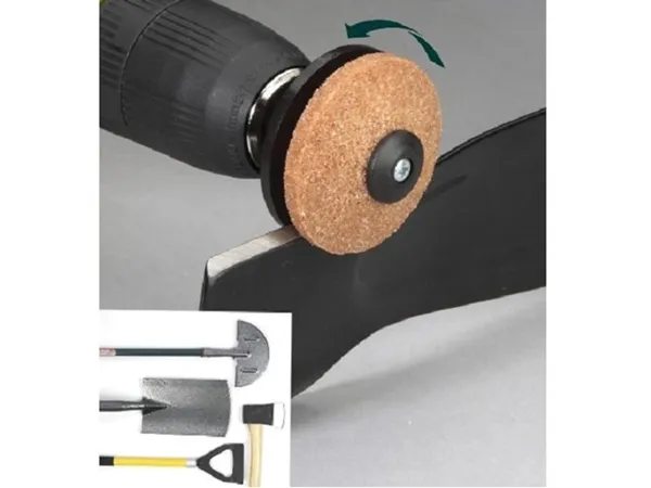 1 x MS1301 Rotary Mower / Garden Tool Sharpener, resharpens rotary mower blades in minutes, without removing the blade from the mower. The corundum grinding wheel provides faster sharpening. Wheel is reversible to double its life. Also restores the working edge back on spades, hoes and lawn edgers. Fits any power drill.