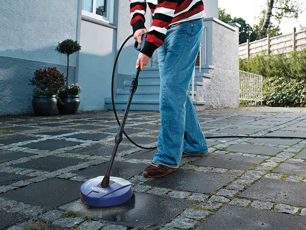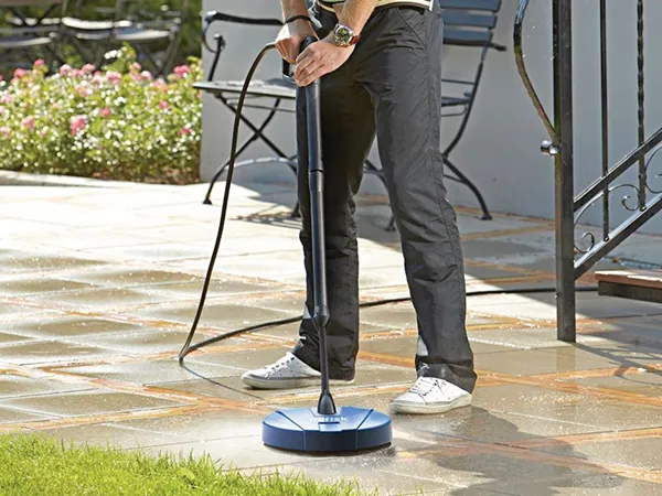 The Kew Nilfisk Alto Click&Clean Compact Patio Cleaner cleans small to medium domestic environment areas such as drives, patios and decks quickly and efficiently. Comes complete with two jet nozzles fitted to a spinning bar on the underside of the patio head. It has an effective cleaning width of 190mm.