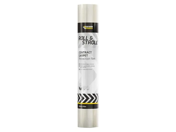 Everbuild Roll & Stroll Contract Carpet Protector is the ultimate clear self-adhesive carpet protection system.