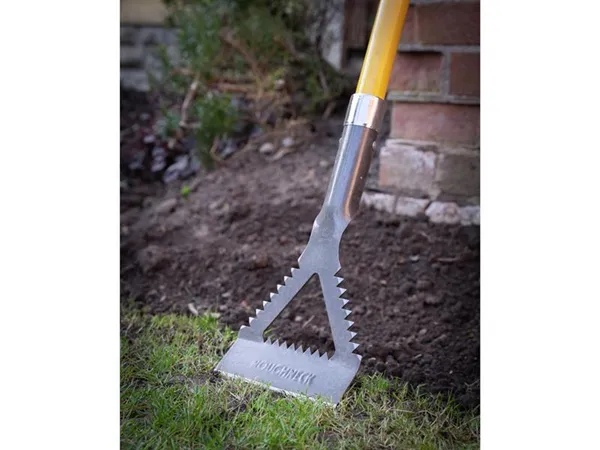 Built to last, the Roughneck® Sharp-Edge Dutch Hoe is manufactured from heavy-duty, carbon steel with a corrosion resistant tumble lacquer finish, connected to a tough and durable fibreglass handle that won’t perish or rot through moisture ingress. The sharpened front blade makes light work of cutting through roots and breaking down compacted soil, whilst the serrated back blade allows for effective back weeding. There are also sharp serrated side blades that are ideal for rasping through thicker weed stems.
