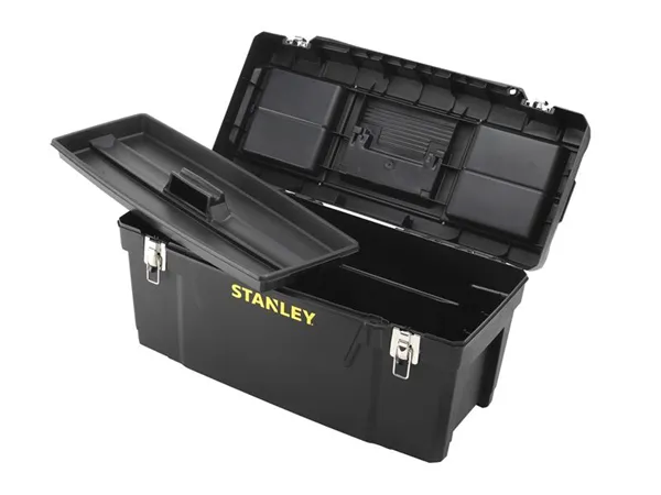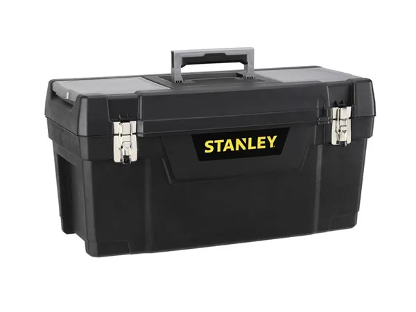 This Stanley Toolbox has robust metal latches for secure fastening. The soft grip handle folds flat into the lid, which also includes 2 organisers which are accessible without opening the toolbox. A built in padlock eye enables the toolbox to be locked, and there is a removable tote tray inside.