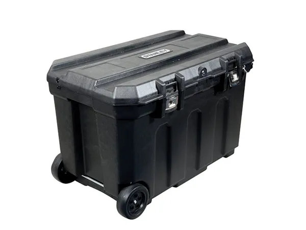 This Stanley Mobile Job Chest provides maximum storage and easy transportation for larger tools, general equipment and workshop materials. The chest has extra large, rust-resistant metal latches, which are durable and long lasting. For extra security, the chest has an integrated key lock and the latches have padlock eyes.